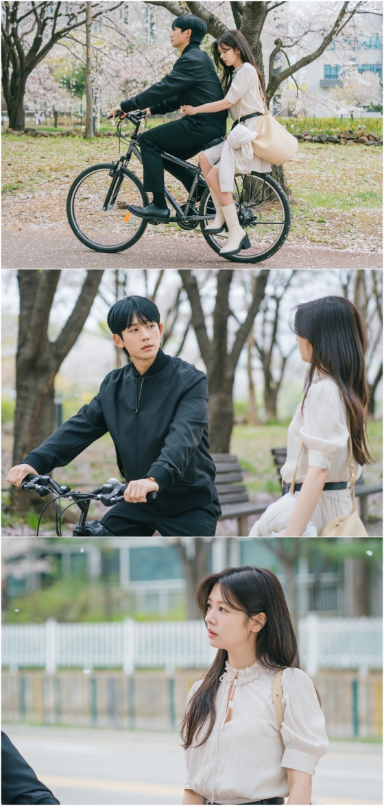 공개된 사진은 흩날리는 벚꽃 아래 자전거를 탄 두 사람이 순정만화를 찢고 나온 듯한 그림 같은 비주얼로 시선을 사로잡는다. 무엇보다 최승효와 그의 뒷자리에서 허리를 살포시 감싸안은 배석류의 얼굴에는 전에 없던 떨림과 긴장감이 가득하다. 하지만 이들의 낯설고 미묘한 핑크빛 기류도 잠시, 자전거에서 내린 배석류와 최승효의 냉랭한 기류가 심상치 않다. 무슨 일인지 서로를 바라보는 눈빛에 원망과 서운함이 담겨 있다.