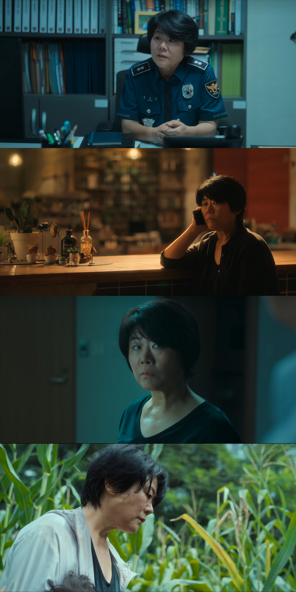또한 이정은은 대사의 완급을 능수능란하게 주도하며 윽박지르는 성아(고민시 분) 앞에서도 조금의 흔들림도 없이 할말을 쏟아내고 피한방울 나오지 않을 것 같은 냉랭함으로 순간의 집중도를 끌어올린다. 어떠한 장치 없이 오직 연기만으로 생활감이 더해진 형사를 표현한 이정은은 이번 작품을 통해 대중의 무조건적인 신뢰를 한층 더 견고히 했다.