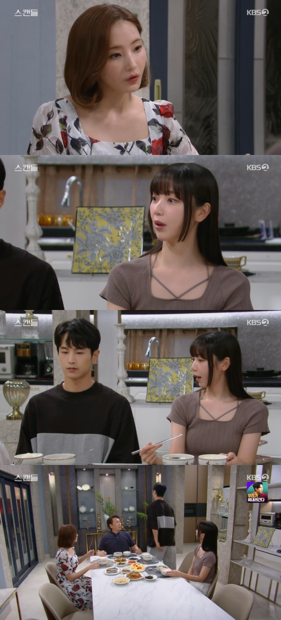 10일 방송된 KBS 2TV 일일드라마 '스캔들'에서는 백설아(한보름 분)에게 극본 표절 누명 씌운 문정인(한채영 분)이 제 발을 저리는 모습이 그려졌다.