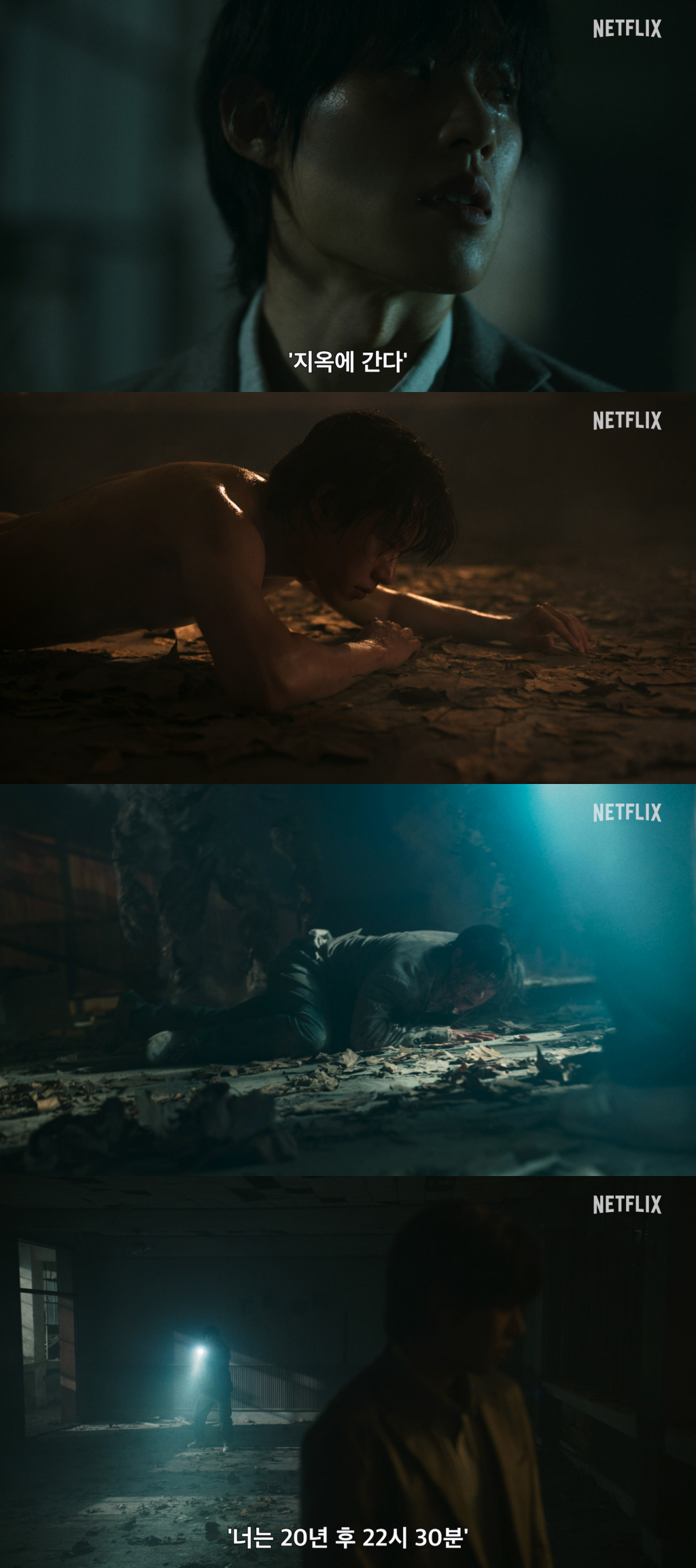 시연 이후 깨어나지만 다시 그에게 달려오는 지옥 사자와 불길 속에서 울부짖는 '정진수', 그리고 서서히 형태를 갖춰가며 부활하고 있는 모습 등은 앞으로 펼쳐질 일들에 대한 궁금증을 증폭시킨다. 지옥행 고지와 시연이 만연해진 더욱 혼란스러운 세상에서 갑작스레 나타난 부활자의 등장으로 새로운 전개를 예고하는 '지옥' 시즌2는 한층 더 깊어진 세계관과 다채로운 캐릭터들로 다시 한번 전 세계 시청자들을 사로잡을 예정이다.