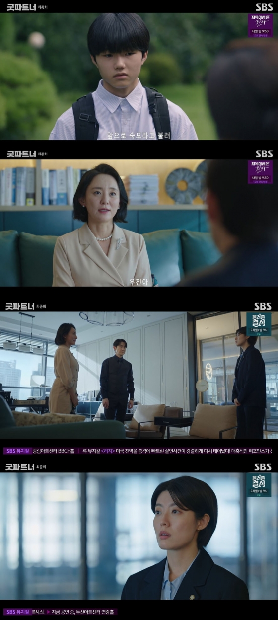 20일 방송된 SBS 금토드라마 '굿파트너' 최종회에서는정우진(김준한 분)의 새어머니 박애연(손지나 분)이 법무법인 대정으로 직접 찾아온 장면이 그려졌다.