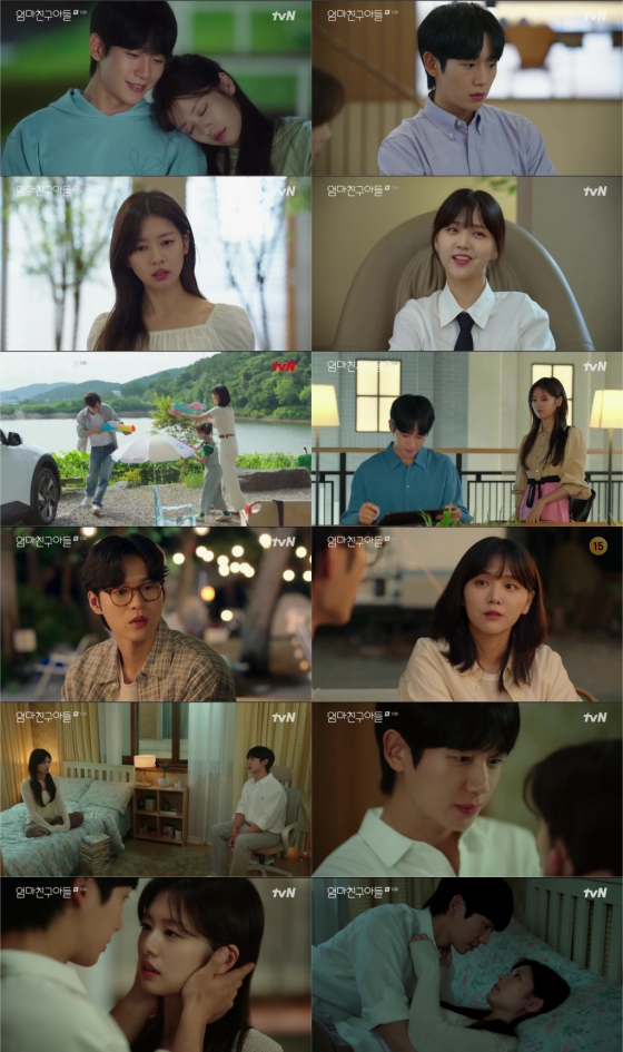 지난 22일 방송된 tvN 토일드라마 '엄마친구아들'(연출 유제원, 극본 신하은, 제작 스튜디오드래곤·더모도리) 12회에는 최승효(정해인 분)와 배석류(정소민 분)가 본격 연애 모드에 돌입한 모습이 그려졌다. 친구에서 연인으로 거듭난 낯선 변화가 어색하고 조심스러운 두 사람은 비밀 연애를 약속했고, 유치하기 짝이 없는 사랑싸움을 하기도 하며 이제 막 시작된 연인의 풋풋한 모습으로 보는 이들을 미소 짓게 했다. 이에 12회 시청률은 수도권 가구 기준 평균 8.3% 최고 9.1% 전국 가구 기준 평균 7.3% 최고 8.1%를 기록, 폭발적 반응 속 자체 최고를 경신하며 케이블과 종편을 포함한 동시간대 1위를 지켰다. (닐슨코리아 유료플랫폼 기준)