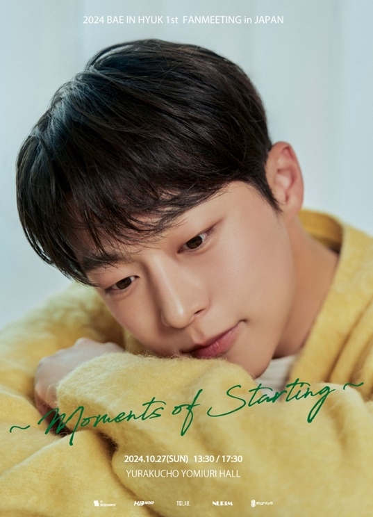 'Moments of Starting'은 배인혁이 일본에서 개최하는 첫 단독 팬미팅이다.이번 팬미팅은 총 2회 공연으로 진행하며 보다 많은 팬들과 만날 예정이다. 팬미팅 개최 소식과 더불어 공개된 포스터에는 배인혁만의 부드럽고 따스한 매력이 고스란히 담겨 있다.