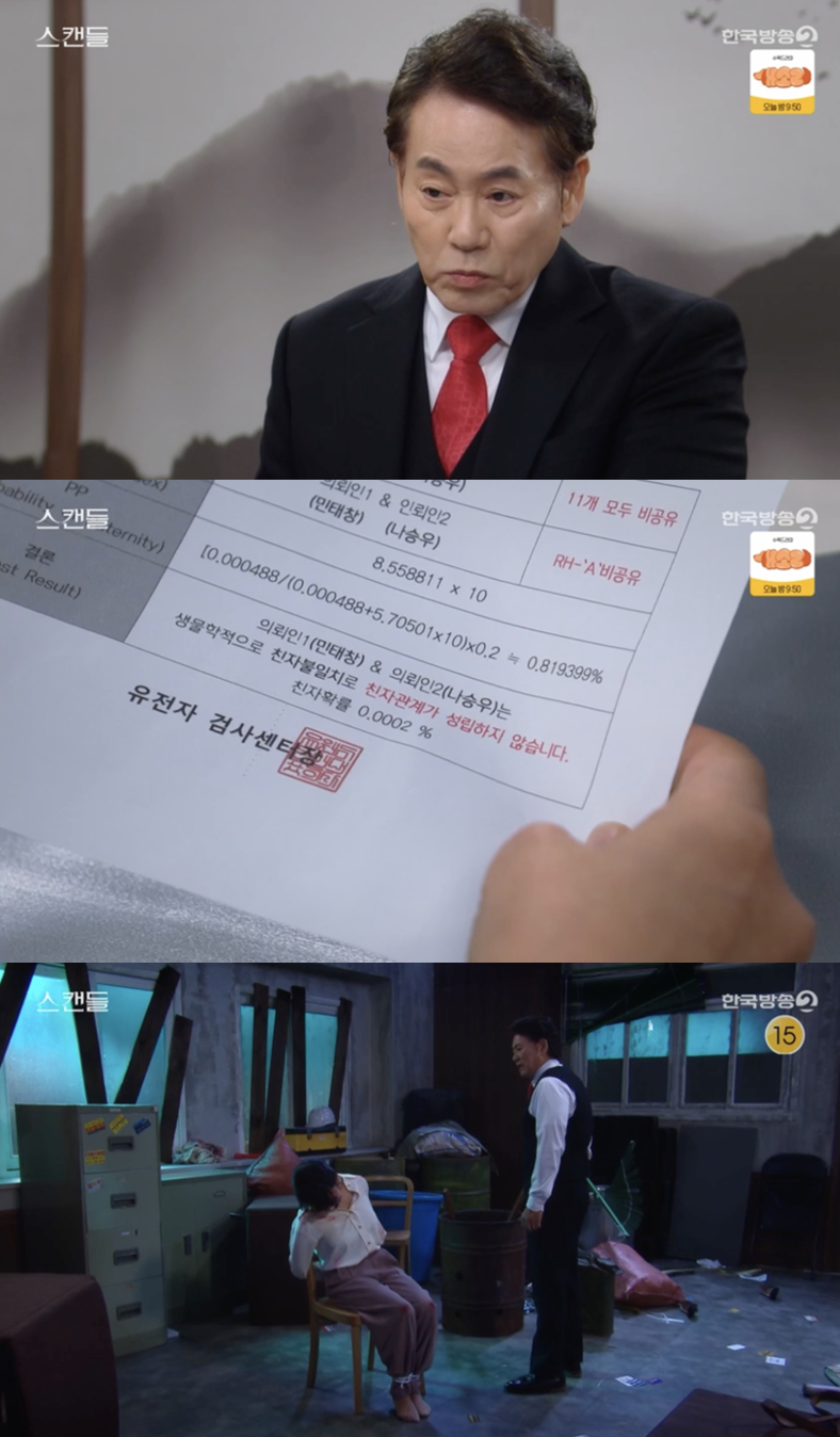 9일 방송된 KBS2 TV 일일 드라마 '스캔들'에서는 민태창(이병준 분)이 이선애(이시은 분)을 납치 후 폭행한 장면이 그려졌다.