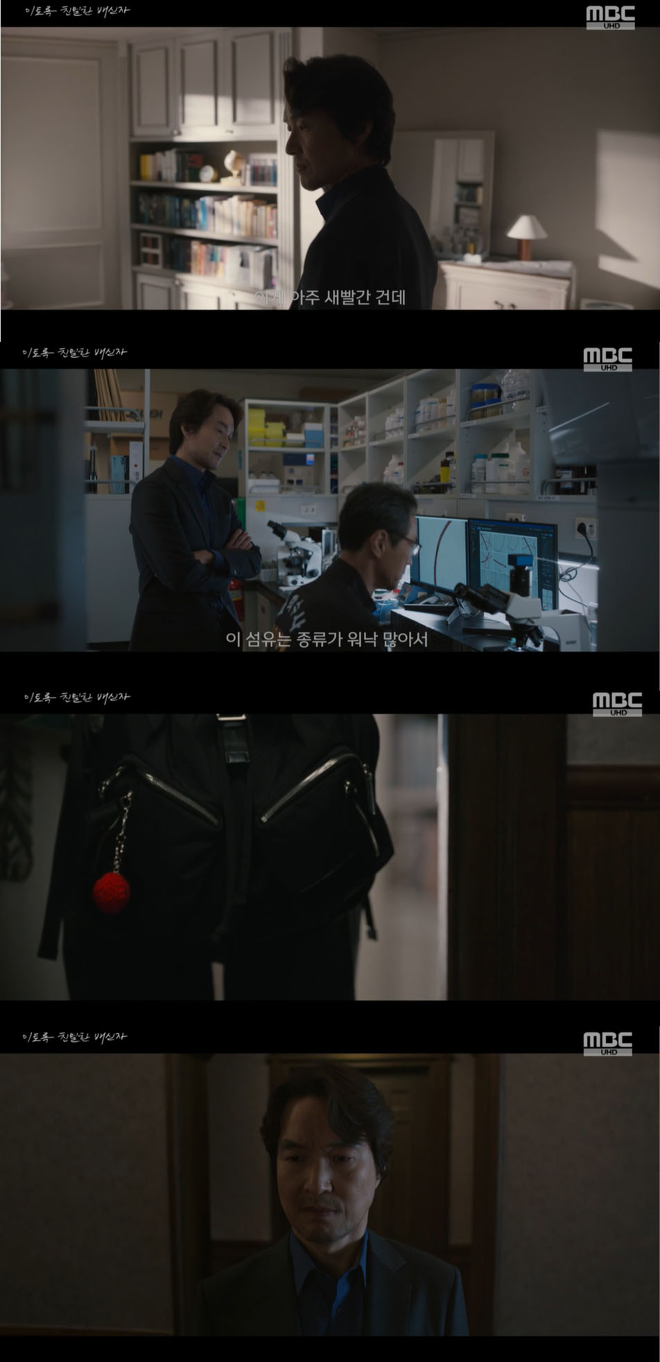 12일 방송된 MBC 금토드라마 '이토록 친밀한 배신자' 2회에서는 장태수(한석규 분)가 대화산 창고 살인 사건 현장에서 발견된 정체 모를 '빨간 실'의 출처를 찾고자 하는 장면이 그려졌다.