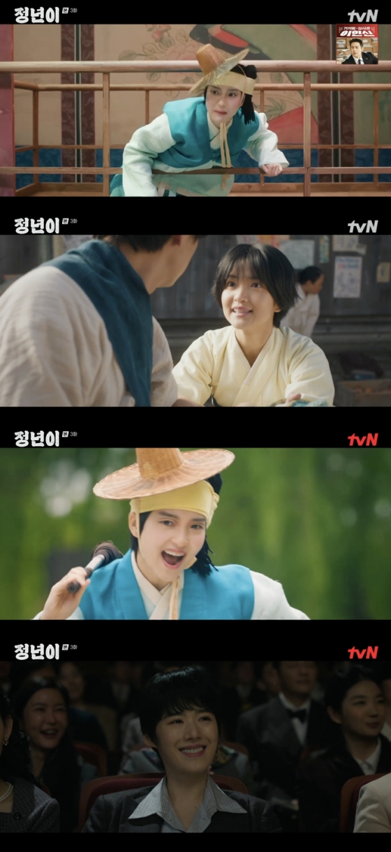 19일 밤 방송된 tvN 토일드라마 '정년이' 3화에서는 정년(김태리 분)이 방자 역으로 무대에 올라 완벽한 연기를 선보인 모습이 그려졌다.