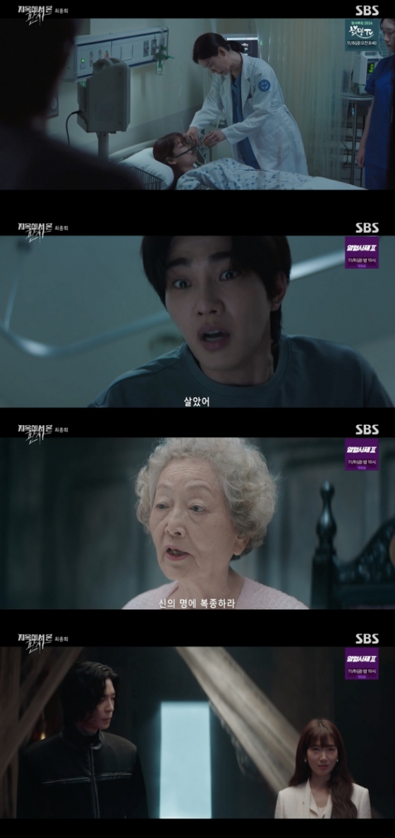 2일 방송된 SBS 금토드라마 '지옥에서 온 판사' 최종회에서는 다시 환생한 강빛나(박신혜 분)의 모습에 놀란 한다온(김재영 분)의 모습이 그려졌다.