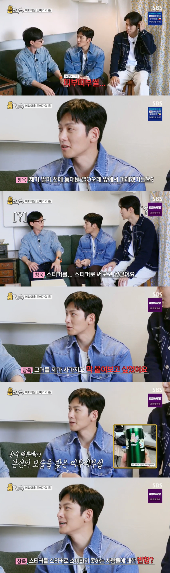 유재석이 "그래서 그 스티커들을 붙였냐"고 묻자 지창욱은 "그렇게 했다. 텀블러에도 붙이고 집에도 막 붙였다. 스티커를 스티커로 소비하지 못하는 사람들에 대한 반항"이라고 털어놔 웃음을 안겼다.