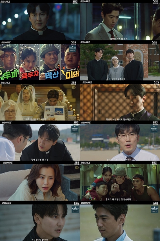 같은 시각, 해파리가 몰래 찍은 보스의 사진을 본 구대영, 구자영, 오요한, 쏭삭은 깜짝 놀라 김해일에게 김홍식이 마약조직 보스라고 밝혔고, 김해일은 김홍식이 성당에 있다는 것을 알린 후 김수녀와 한신부(전성우 분)에게 신자들을 성전 안으로 이동시켜달라고 부탁했다. 그렇게 모두가 성전 안으로 들어가자 비가 쏟아지기 시작했고, 김홍식은 자신을 뚫어지게 쏘아보는 김해일을 향해 "잘 버텨 왔는데"라고 피식 웃었다. 김해일은 분노한 얼굴로 "지금부터나 잘 버텨"라며 서슬 퍼런 경고를 날렸고, 그와 동시에 두 사람이 서로를 향해 전력 질주하며 주먹을 날리는 '선과 악, 강 대 강 주먹 대치 엔딩'을 선사해 궁금증을 치솟게 했다.