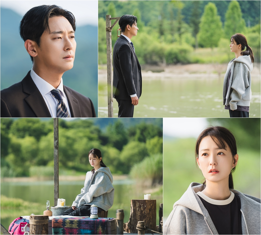 '사랑은 외나무다리에서' 주지훈과 정유미가 연못가에서 급속 냉각된 눈빛으로 맞대면해 그 배경에 관심이 쏠린다.