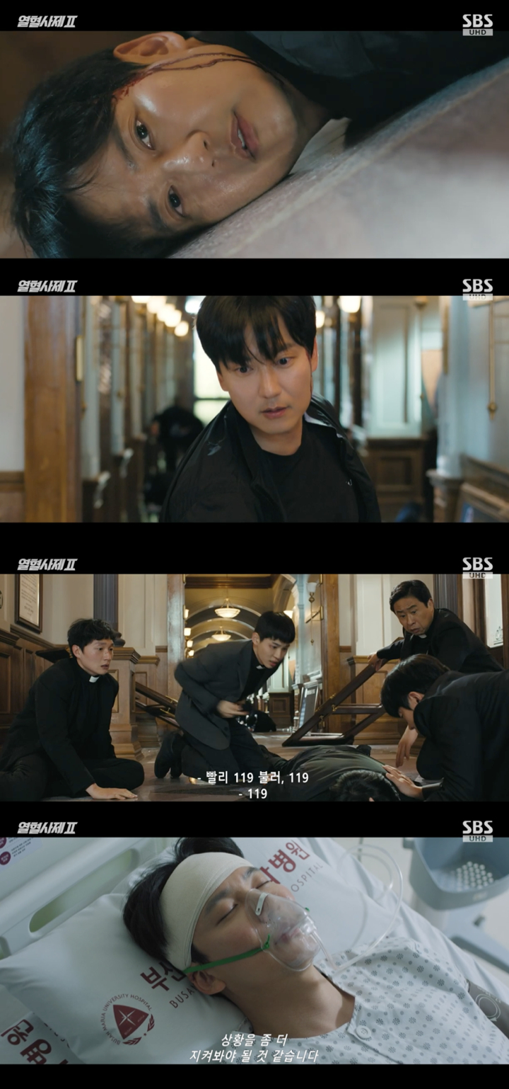 앞서 김해일은 신학교 테러를 막다가 쓰러져 병원으로 이송됐다.