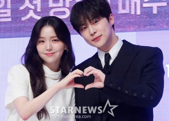 배우 김지은, 배인혁이 17일 오전 서울 강남구 논현동 엘리에나 호텔에서 진행된 채널A 토일드라마 '체크인 한양' 제작발표회에 참석해 포즈를 취하고 있다. '체크인 한양'은 궁궐보다 더 화려한 초호화 여각 용천루에 현대의 '인턴' 격인 교육 사환으로 입사한 조선 꽃청춘들의 파란만장 성장 로맨스를 그린 작품이다. 오는 21일 첫 방송. 2024.12.17 /사진=김창현 chmt@