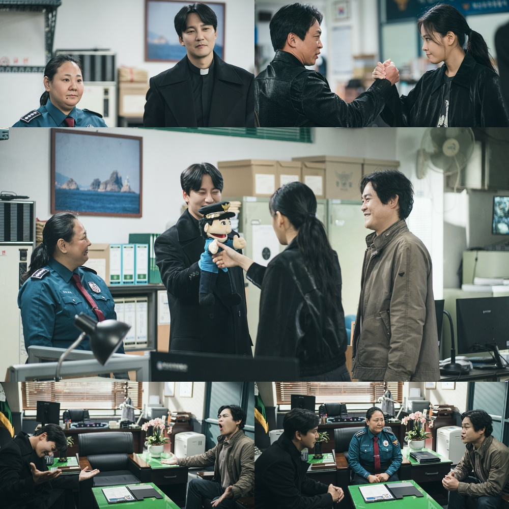 제작진에 따르면 '구자영, 열빙어의 경찰 복귀' 장면은 극 중 분위기처럼 들뜬 현장에서 진행돼 눈길을 끌었다. 만나기만 하면 웃음꽃이 피는 배우들은 이 장면을 촬영하면서도 웃음 폭탄을 터트렸다. 김남길은 손인형을 끼고 장난을 치며 숨겨놨던 장꾸미를 드러냈고, 김성균은 내면에서 꿈틀대던 흥을 표출해 유쾌함을 일으켰다. 촬영 중간중간 담소를 나누며 친근함을 뽐냈던 김형서, 허순미, 오희준은 촬영이 시작되자 김남길, 김성균과 함께 막강한 왁자지껄 시너지를 터트리며 코믹과 결연함이 어우러진 입체적인 장면을 완성했다.