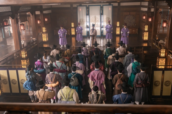이어 무언가를 흥미롭다는 듯이 바라보는 홍덕수(김지은 분)와 불만 가득한 표정의 고수라(박재찬 분)도 호기심을 자아낸다. 제작진에 따르면 이는 용천루에 도착하자마자 한 소동을 함께 목격하게 된 홍덕수와 고수라를 포착한 것이라고. 자기 일이 아님에도 불구하고 적극적으로 나서는 고수라와 이를 유심히 바라보는 홍덕수에게서, 첫날부터 이들이 사건에 휘말릴 것임이 암시되어 호기심을 치솟게 한다.