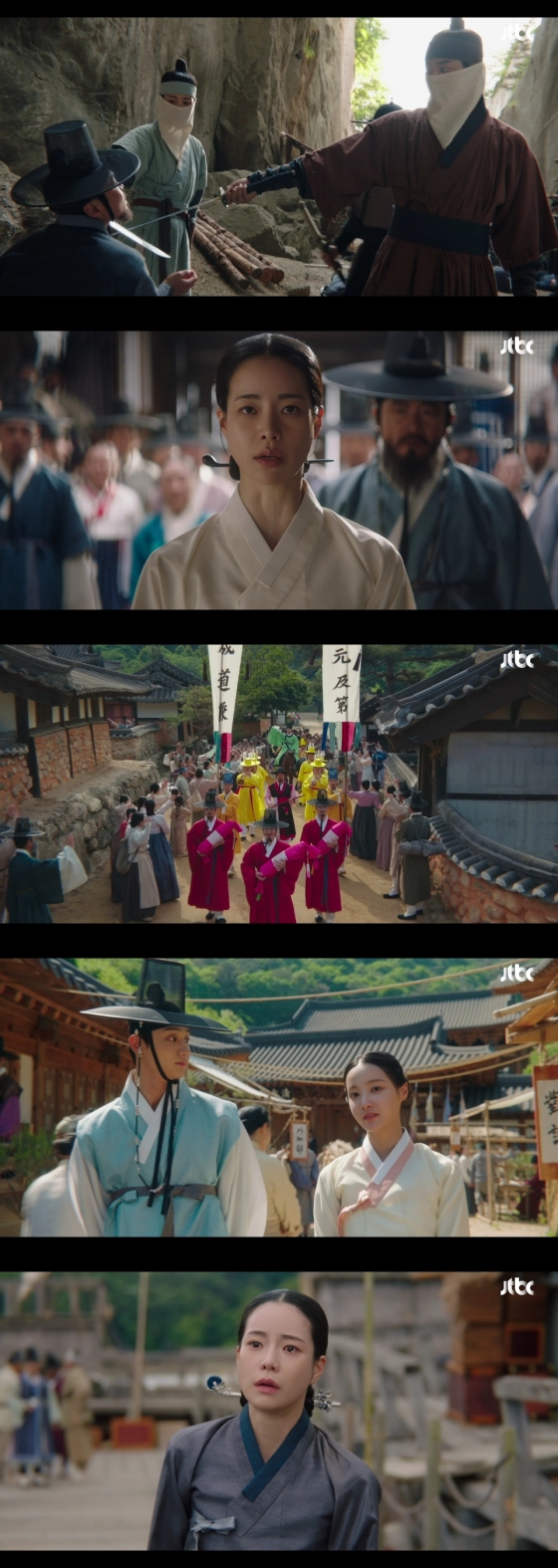 차마 부탁을 거절하지 못하고 길을 떠나기 위해 여각을 찾았던 옥태영은 갑작스럽게 오래전 집을 떠났던 남편 성윤겸(추영우 분)을 발견했다. 자신을 부르짖는 옥태영의 목소리에도 냉정하게 뒤돌아선 성윤겸의 사연은 또 무엇인지 호기심이 더해지고 있다.