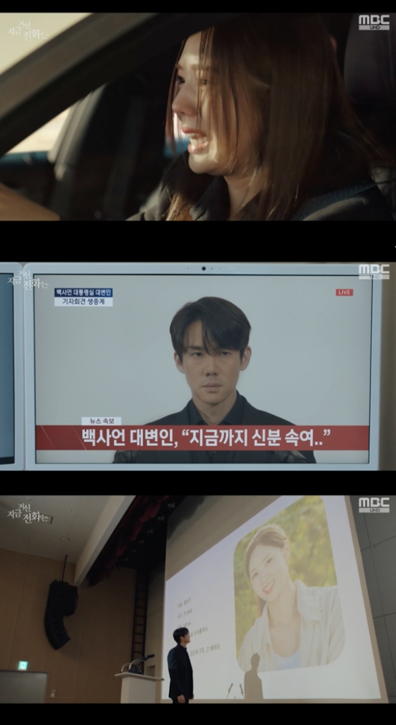 이어진 장면에서는 사고 차량이 추락돼 여성 운전자가 실종됐다는 뉴스가 보도됐다. 백사언은 해당 실종 여성이 자신의 아내라고 밝히고, 범인의 몽타주를 공개해 긴급 수배에 나섰다.