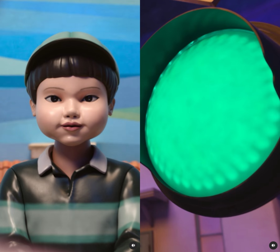 영상 속에는 '오징어 게임' 시즌1과 시즌2에서 '무궁화 꽃이 피었습니다' 마스코트로 맹활약한 '영희' 캐릭터가 어딘가로 옮겨지고 철수 캐릭터와 마주치는 모습이 있었다.