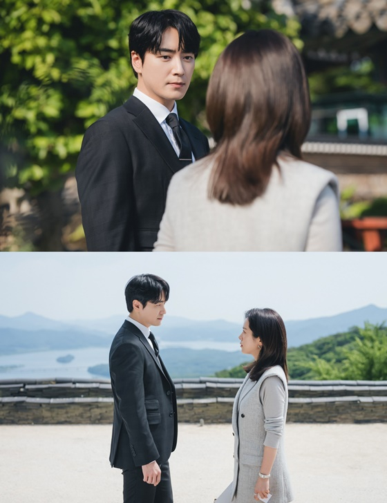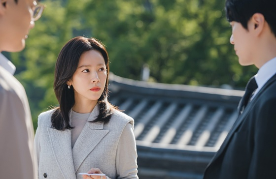 공개된 스틸컷엔 지윤과 은호가 서로의 눈을 바라보고 있는 상황이 담겼다. 로맨틱한 무드가 넘쳐흘렀던 지난 이미지와 영상과는 달리, 두 사람 사이에는 어쩐지 찬 바람이 분다. 은호의 명함을 받아 들며 그를 보고 있는 지윤의 눈빛은 날카롭고, 은호 또한 이에 지지 않고 지윤을 뚫어져라 바라보며 맞선다.