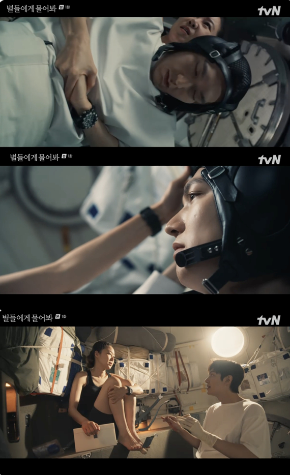 4일 첫 방송된 tvN 새 토일드라마 '별들에게 물어봐' 1회에서는 공룡(이민호 분)가 700억을 주고 우주관광객 자격으로 탐사단 G.Oo10에 탑승한 모습이 그려졌다.