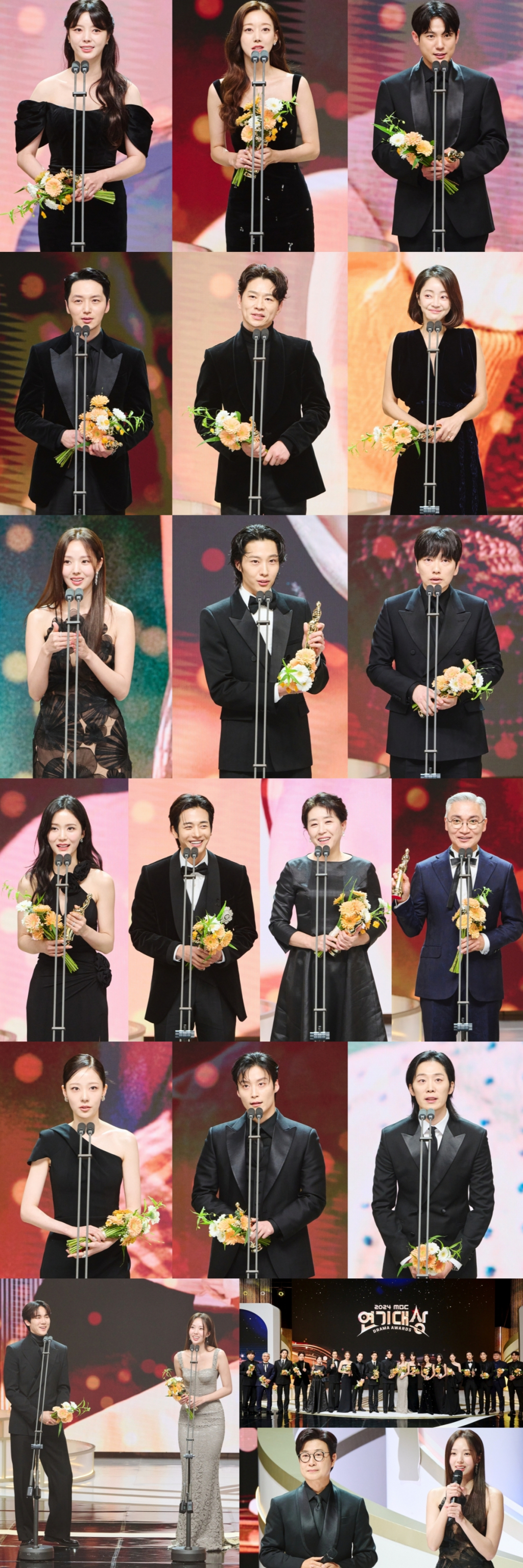 또한 드라마 명가라는 명성에 걸맞게 2024년 한 해 동안 일일드라마부터 단막극, 금토드라마까지 매주 안방에 새로운 재미를 선물했던 만큼 여러 작품의 주역들이 수상의 기쁨을 누렸다. '백설공주에게 죽음을-Black Out'은 베스트 액터상의 변요한을 비롯해 신인상, 남녀 조연상, 베스트 캐릭터상을 받으며 5관왕을 차지했다. '지금 거신 전화는'은 우수 연기상, 베스트 커플상, 신인상까지 총 4개의 트로피를 받았고 '수사반장 1958'의 배우들은 올해의 드라마상, 우수 연기상에 이름을 올렸다. '밤에 피는 꽃' 역시 우수 연기상, 남녀 조연상까지 총 4관왕에 성공했다.