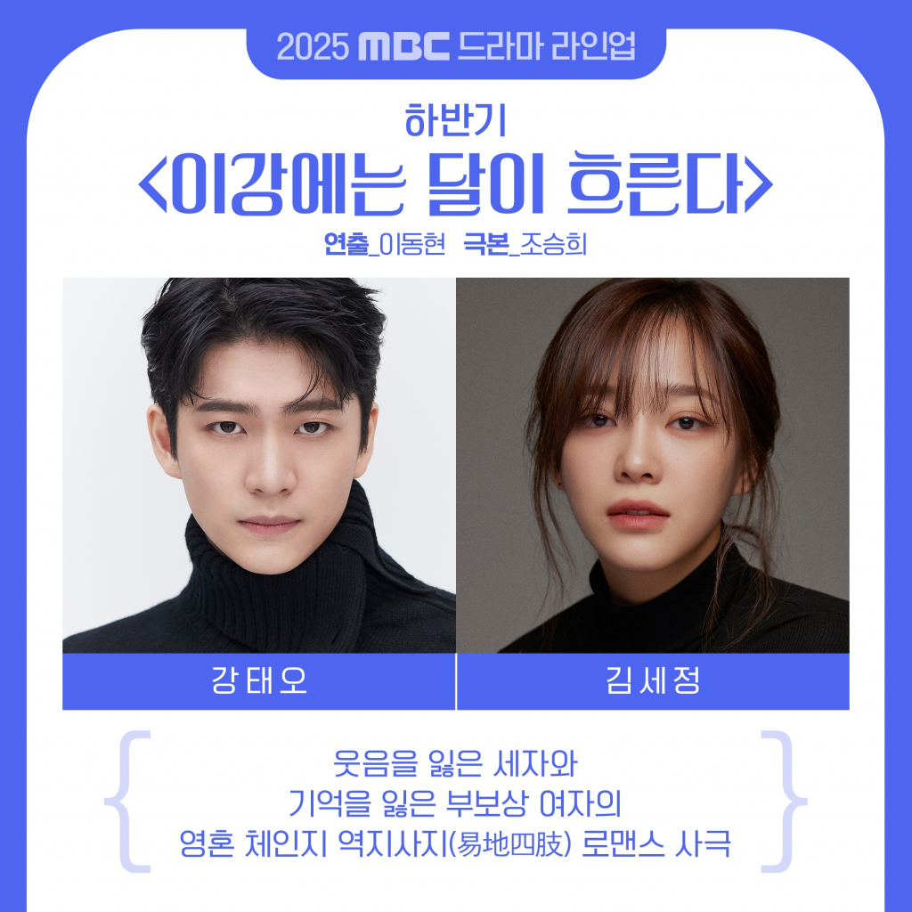 '사극 필승' MBC가 선보이는 색다른 로맨스 판타지 사극 '이강에는 달이 흐른다'가 2025년 MBC 드라마의 흥행 신화를 이어갈 예정이다. '이강에는 달이 흐른다'(기획 권성창, 연출 이동현, 극본 조승희, 제작 하이지음스튜디오)는 웃음을 잃은 세자와 기억을 잃은 부보상 여자의 영혼 체인지 역지사지(易地四肢) 로맨스 사극이다.