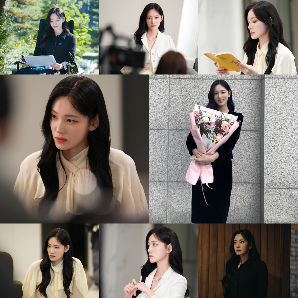 사진 속 한재이는 다양한 의상을 소화하며 극 중 홍인아의 차분하고 우아한 성격을 자연스럽게 드러냈다. 크림색 블라우스와 화이트 슈트는 고급스러운 이미지를 한층 강조했으며, 블랙 드레스는 캐릭터의 강렬한 존재감을 극대화했다. 각 의상은 홍인아의 상황과 감정에 맞춰 정교하게 스타일링되어 캐릭터의 서사를 한층 풍부하게 만들었다.