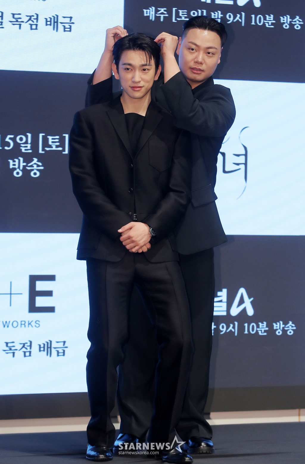 배우 박진영, 임재혁이 11일 오전 서울 구로구 더 세인트웨딩에서 진행된 채널A 주말드라마 '마녀' 제작발표회에 참석해 포즈를 취하고 있다.