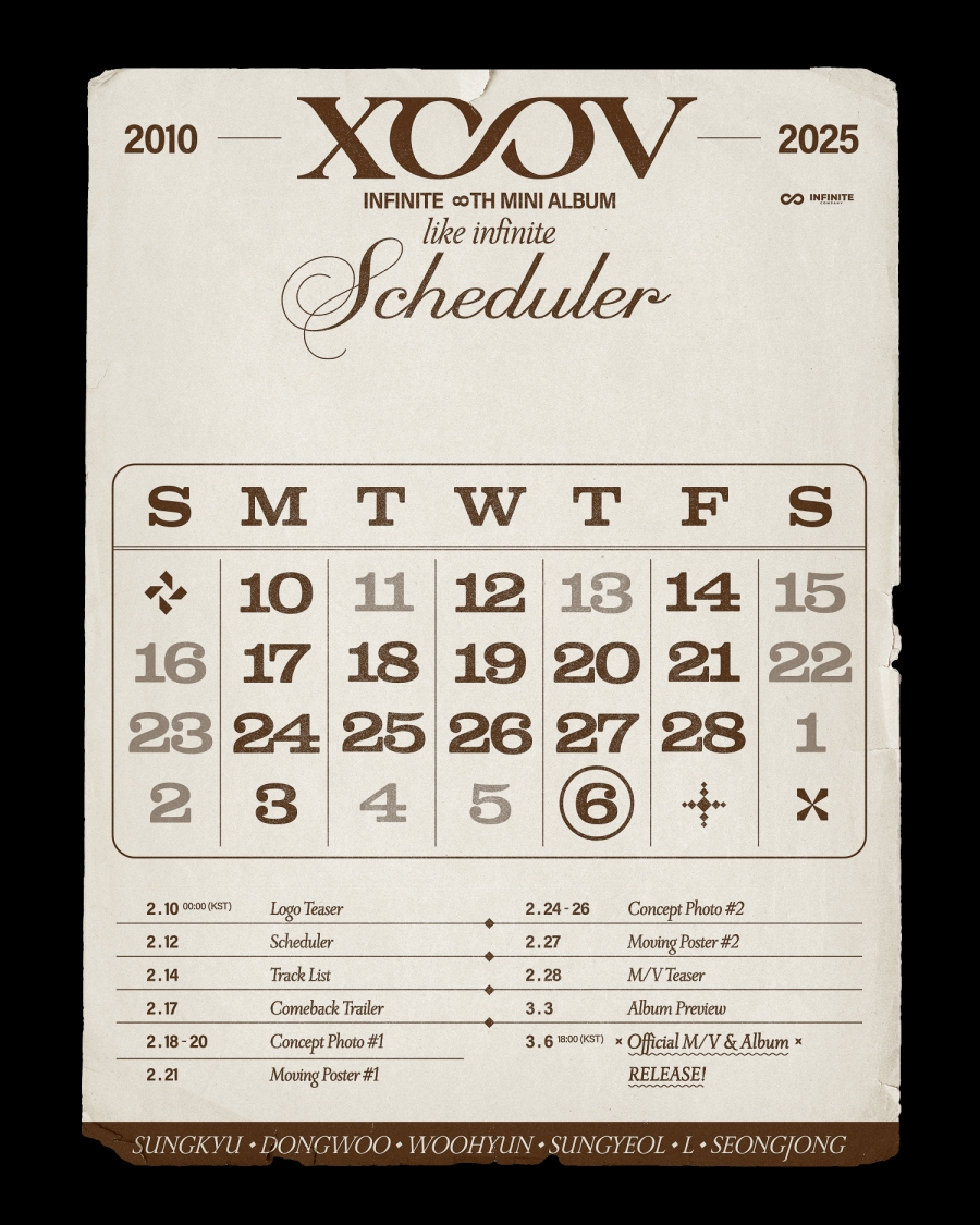 소속사 인피니트 컴퍼니는 12일 공식 SNS를 통해 인피니트의 여덟 번째 미니 앨범 '라이크 인피니트(LIKE INFINITE)' 컴백 스케줄러를 공개했다.