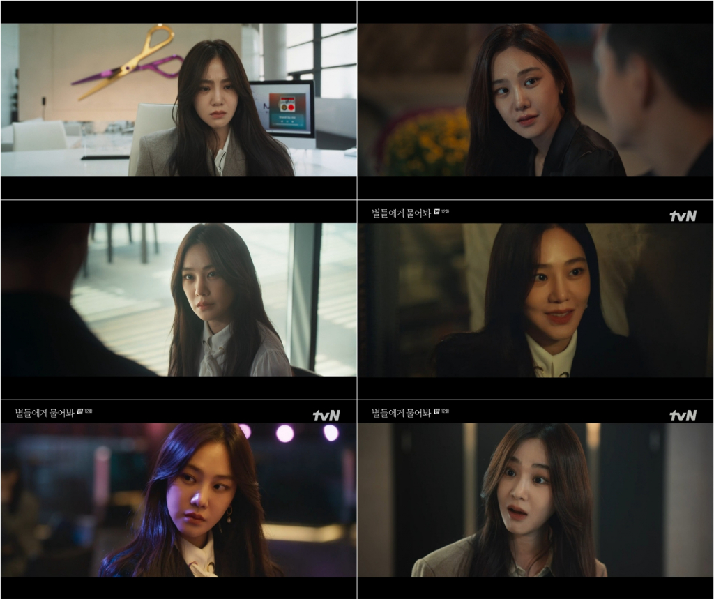 '별들에게 물어봐'는 무중력 우주정거장에서 일하는 보스 '이브'와 비밀스러운 미션을 가진 불청객 '공룡'의 지구 밖 생활기. 한지은은 극 중 미와 지성, 그리고 능력까지 갖춘 MZ전자 대표 최고은 역으로 활약했다. 한지은은 약혼자 공룡(이민호 분)에게 배신당한 고은의 일편단심 순애보를 비롯해 이브 킴(공효진 분)을 향한 질투와 분노 등 복잡다단한 캐릭터를 선보였다.