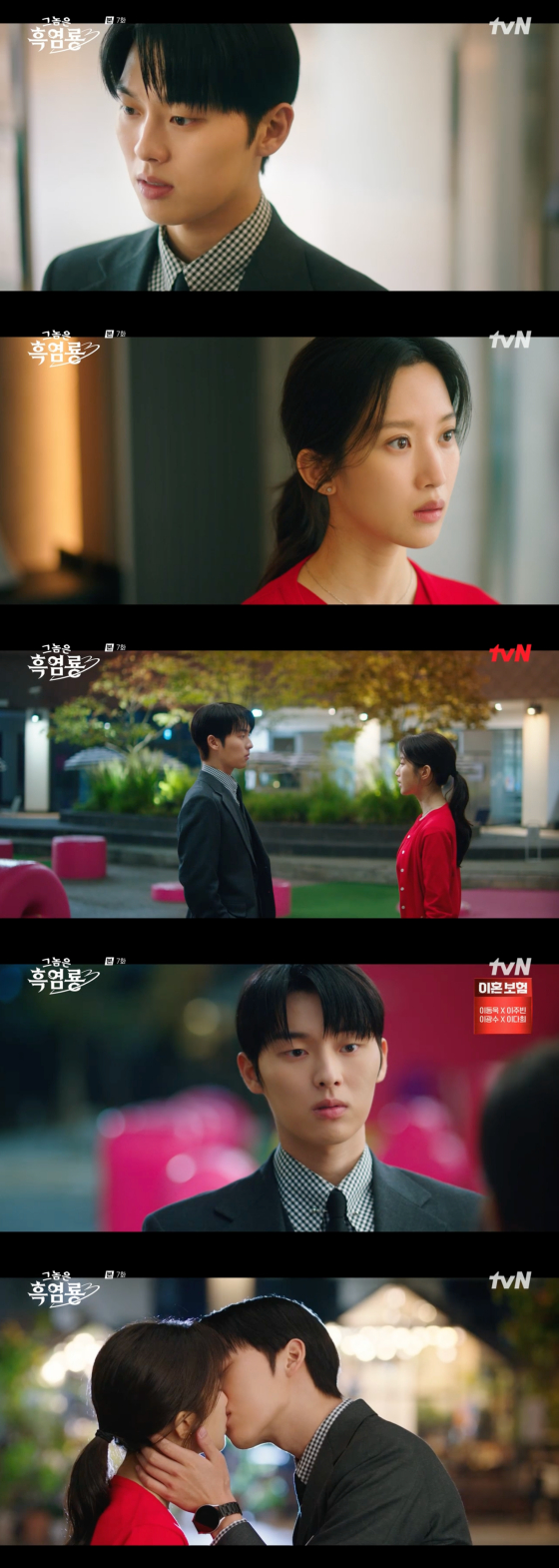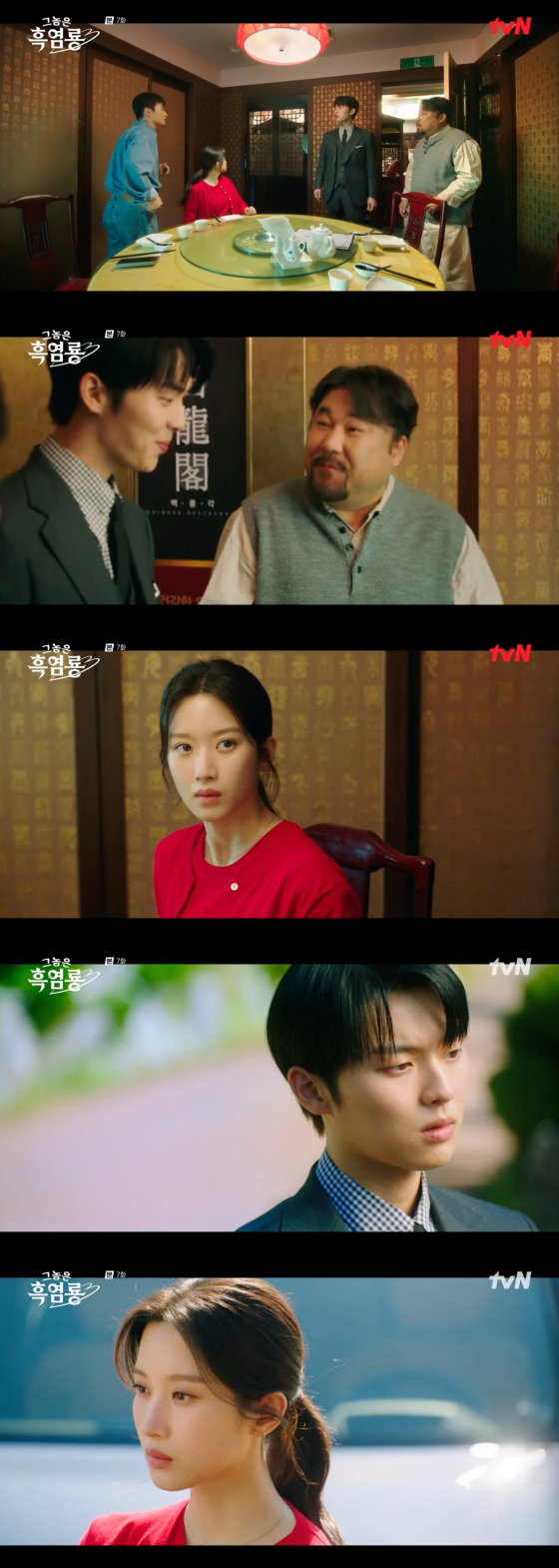 10일 방송된 tvN 월화드라마 '그놈은 흑염룡'에서는 반주연(최현욱 분)이 백수정(문가영 분)의 가족 모임에 등장하는 모습이 그려졌다. 반주연의 마음을 피하던 백수정은 그의 마음을 받아줬다.