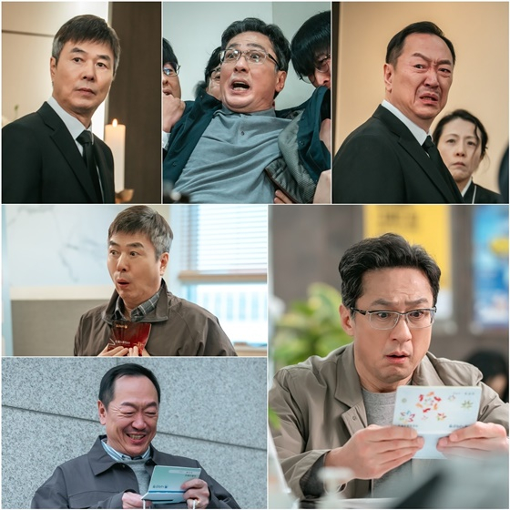 또 다른 스틸 속에는 통장을 확인하는 삼총사의 모습이 담겨 있다. 건물주 한무철이 올린 보증금으로 인해 파산 위기에 놓인 김대식과 아들의 심장병 수술비를 마련해야 하는 최규태의 표정이 시선을 사로잡는다.