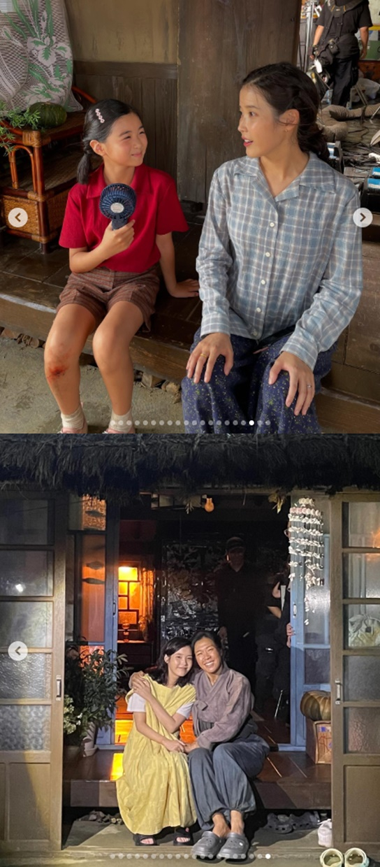 또 아이유는 금명이 은명이 동명이 등, 극중 자녀로 나오는 아이들과 다정한 모습을 보여 눈길을 끈다. 엄마 염혜란의과 투샷, 박보검과의 다정한 모습도 시선을 사로잡는다.