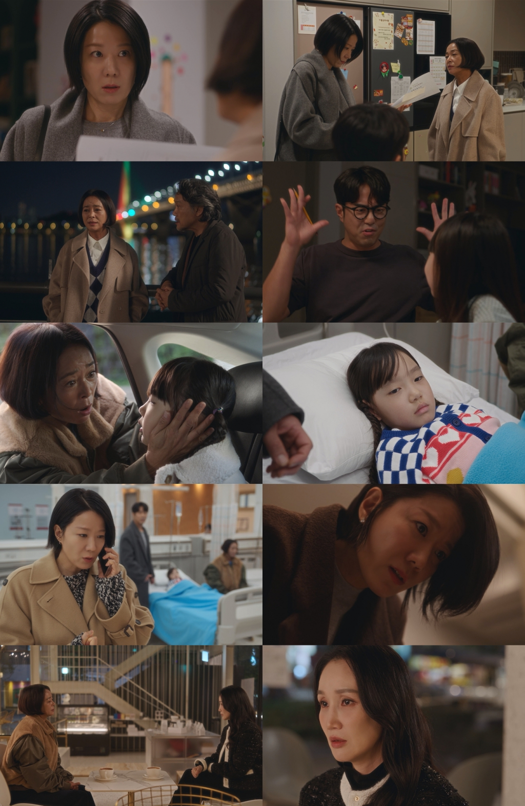 정은의 교육열이 과하다고 생각한 지아(조민수 분)는 영욱(정진영 분)에게 답답한 마음을 토로했다. 지아는 "수능이 아니라 지능 검사거든요? 근데 점수가 잘 안 나왔다고 검사를 다시 받아 보라는 거예요"라면서 속상해했다. 지아의 염려대로 서윤은 아동 지능 검사 당일에 스트레스성 구토와 발열 증상으로 응급실에 갔다.