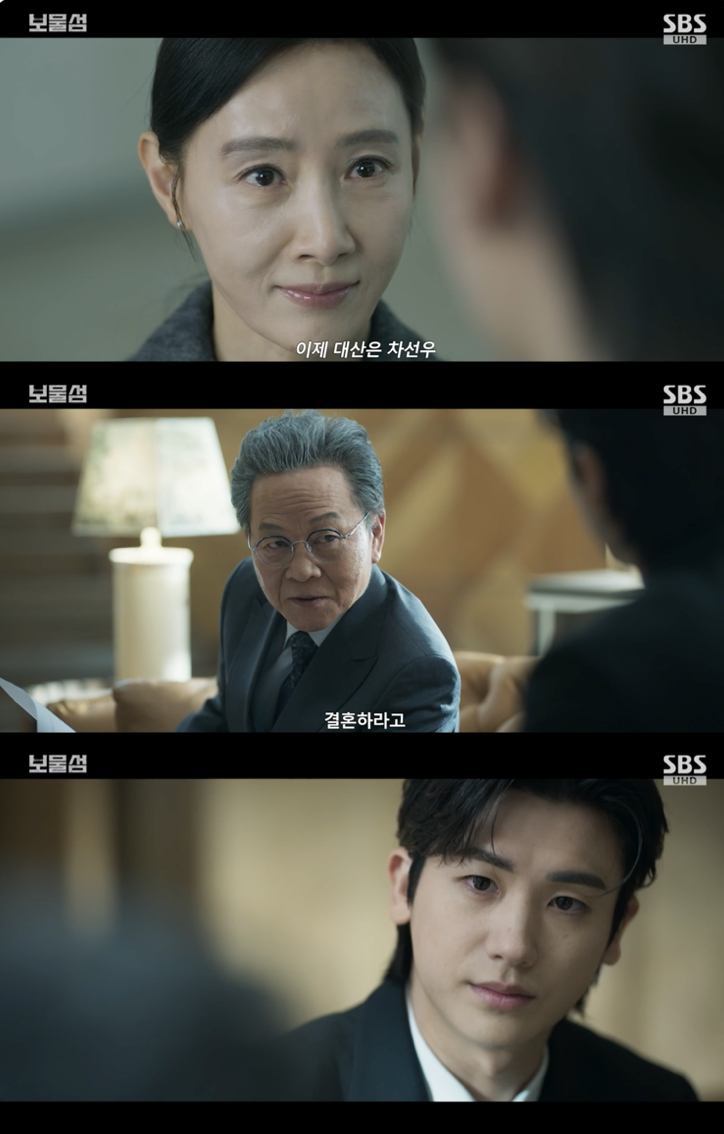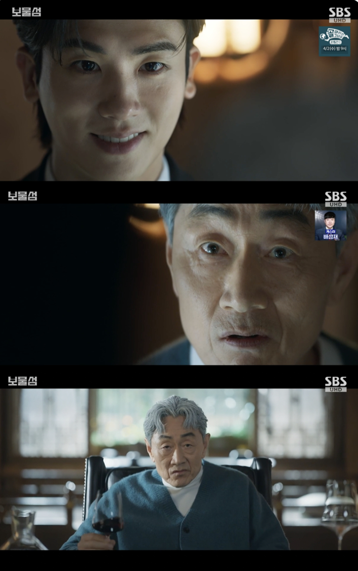 28일 방송된 SBS 금토드라마 '보물섬' 11회에서는 차강천(우현 분)이 지선우(차우민 분)을 대산 그룹의 후계자로 만들고자 큰 그림을 그리는 모습이 그려졌다.