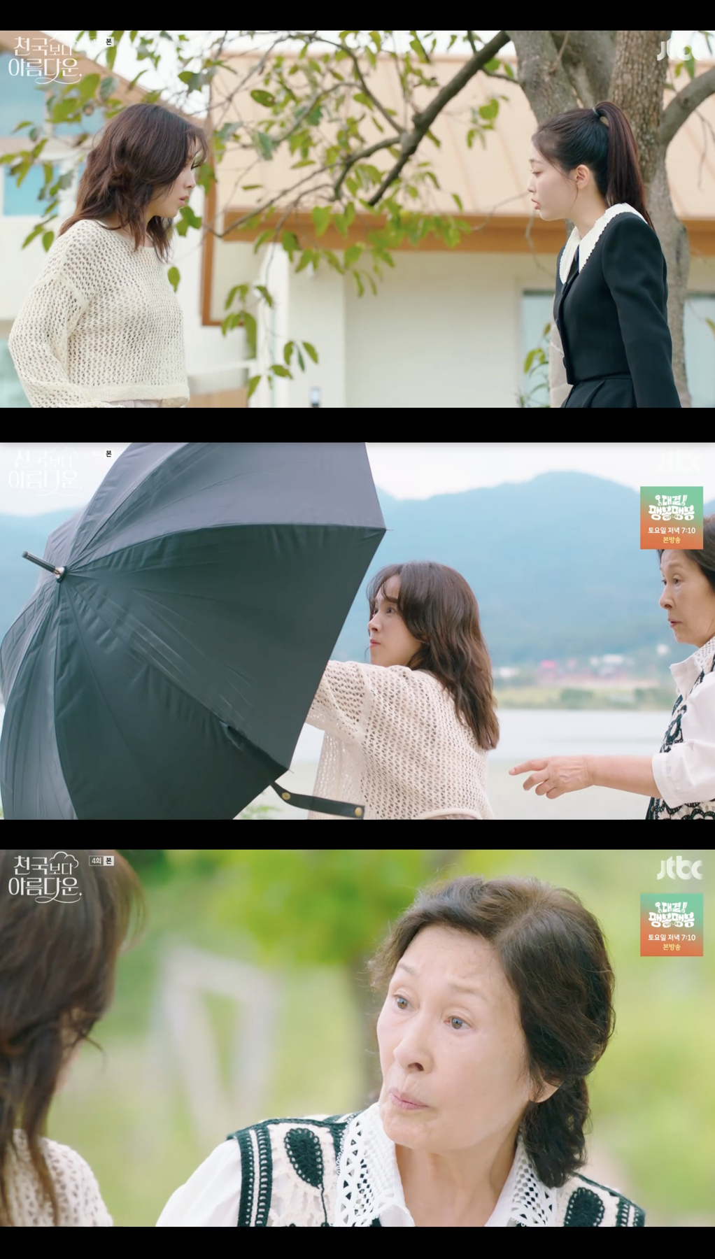 27일 방송된 JTBC 토일드라마 '천국보다 아름다운' 4화에서는 이해숙(김혜자 분)이 함께 지내는 솜이(한지민 분)를 통해 이영애(이정은 분)를 떠올리는 장면이 그려졌다.