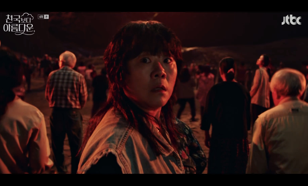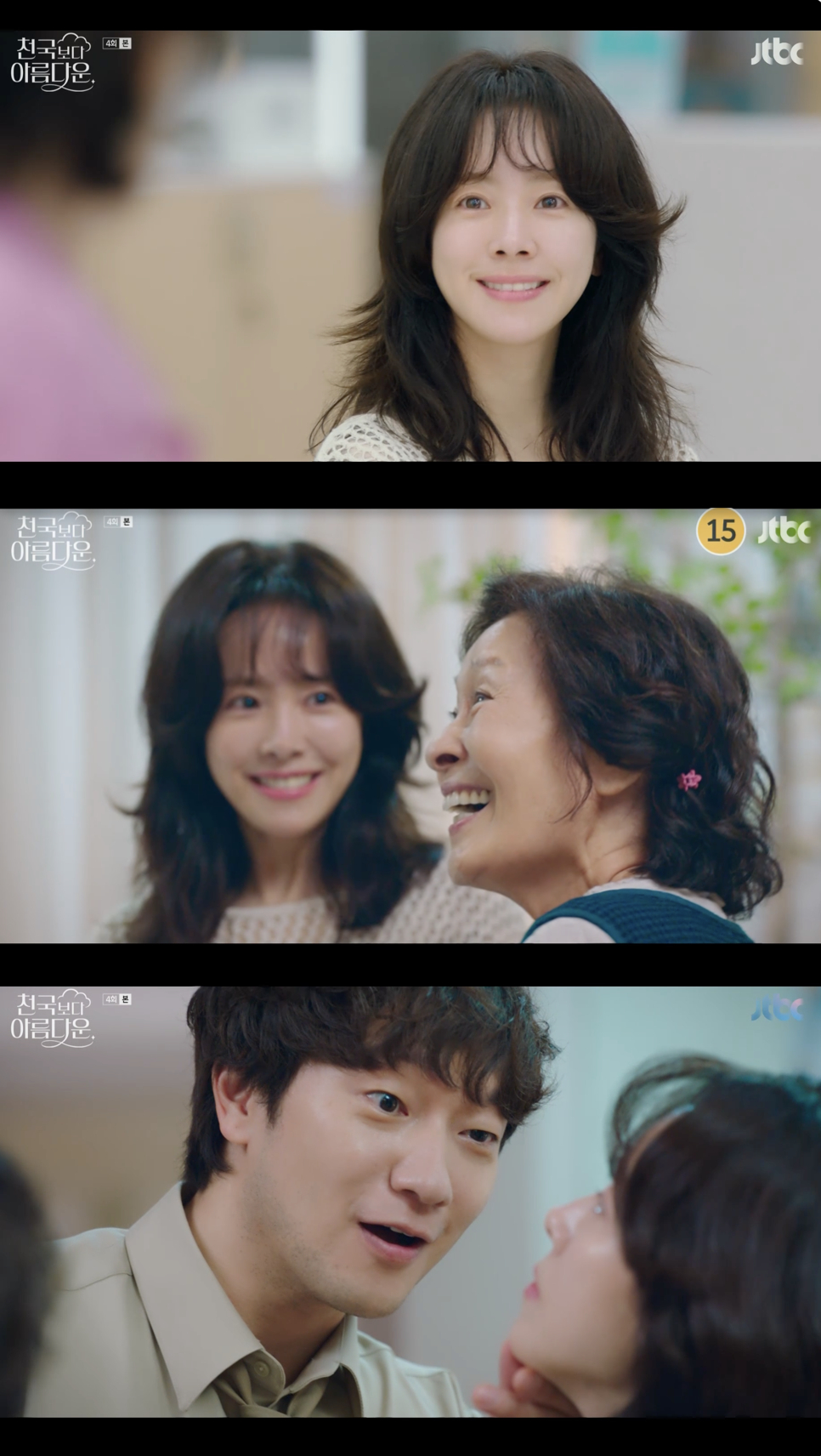 27일 방송된 JTBC 토일드라마 '천국보다 아름다운' 4화에서는 이해숙(김혜자 분)이 솜이(한지민 분)을 이영애(이정은 분)라고 확신한 모습이 그려졌다.