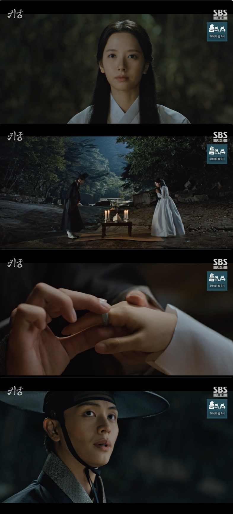 2일 방송된 SBS 금토드라마 귀궁 5회에서는 여리(김지연 분)가 이무기 강철이(육성재 분)를 몸주신으로 받아들이는 모습이 그려졌다.