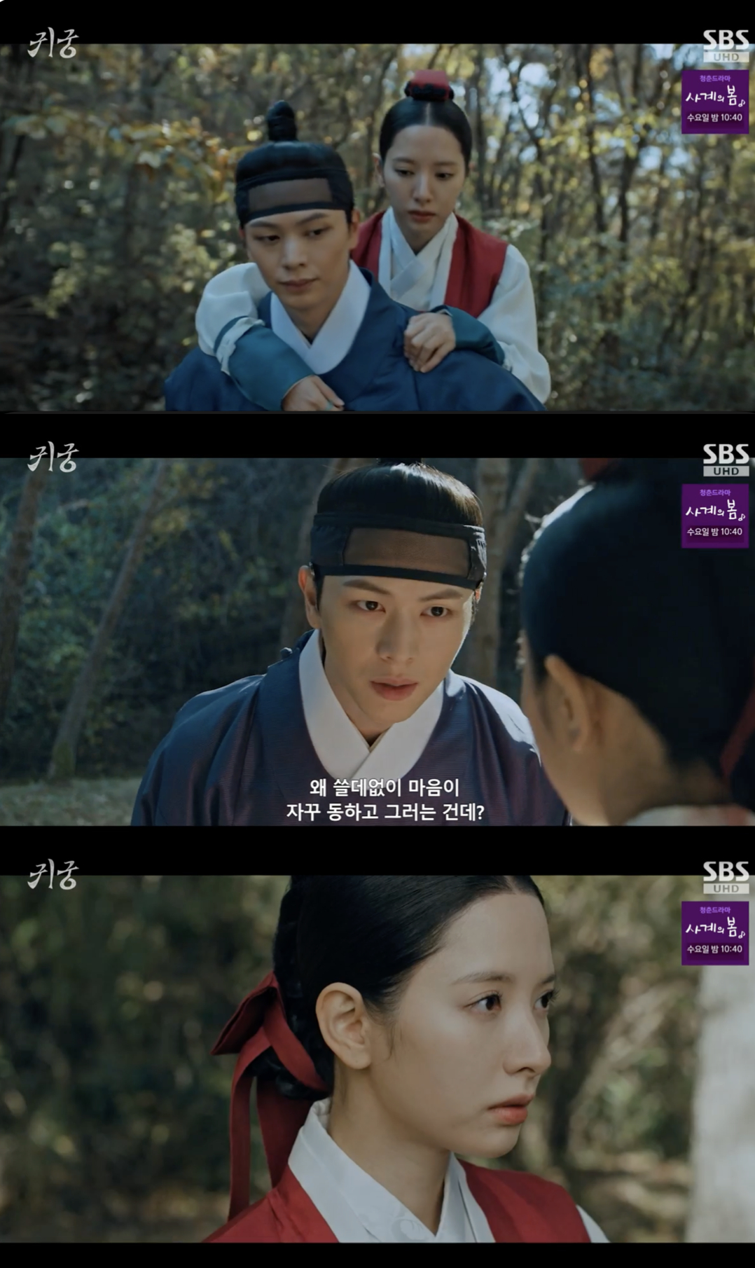 9일 방송된 SBS 금토드라마 '귀궁'에서는 신발을 잃어버린 여리(김지연 분)를 보고 강철이(육성재 분)이 자신의 등을 내주는 모습이 그려졌다.