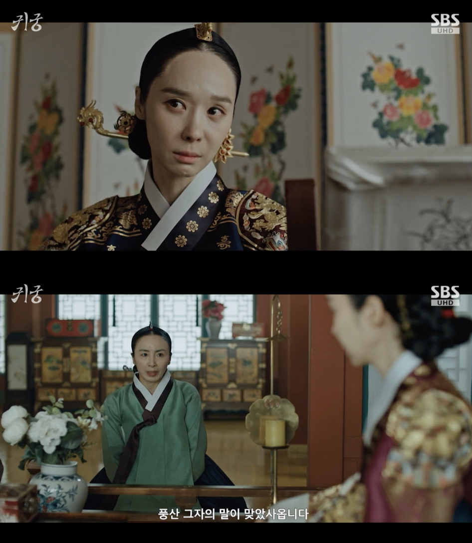한상궁은 "마마, 풍산 그자의 말이 맞았사옵니다"라며 말문을 열고, "보름 전 궐에 들어온 이가 술사라 하지 않았사옵니까"라고 말했다.