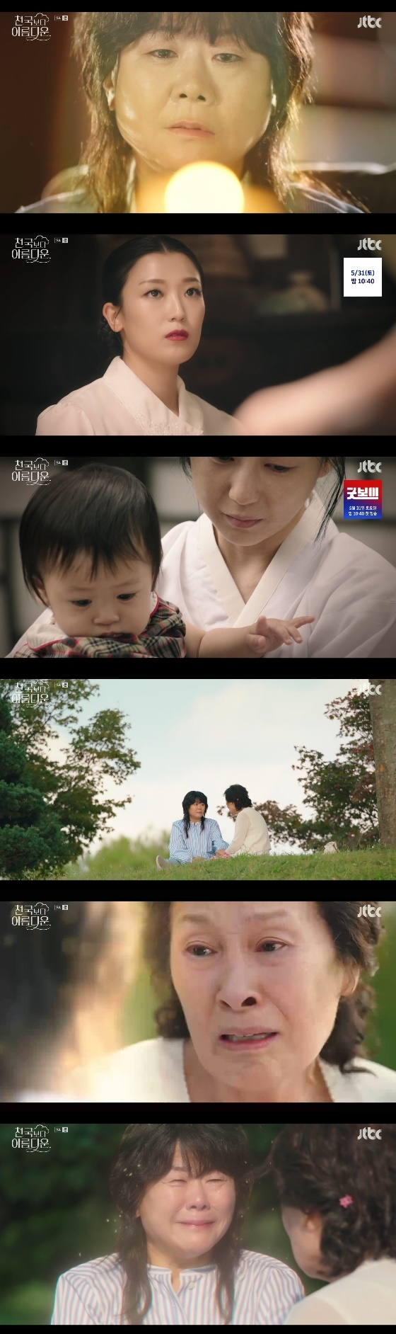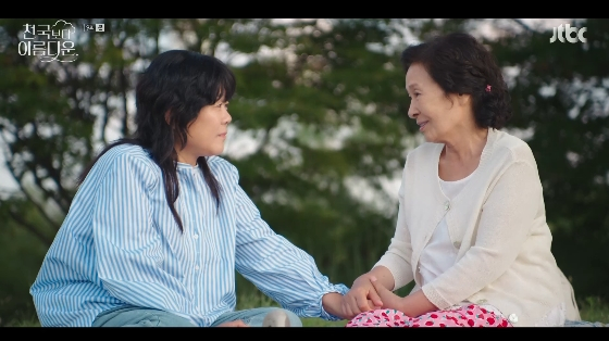 17일 방송된 JTBC 토일드라마 '천국보다 아름다운'에서는 이영애(이정은 분)가 이해숙(김혜자 분)이 어린 시절 세상을 떠난 생모였다는 사실이 드러났다.