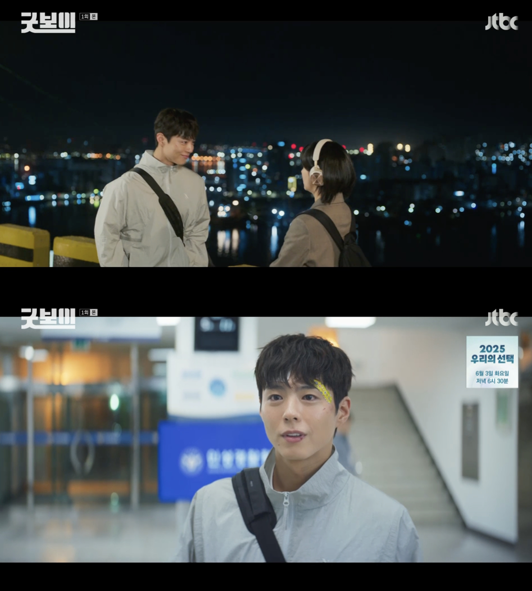 31일 첫 방송된 JTBC 새 토일드라마 굿보이 1회에서는 윤동주(박보검 분)와 지한나(김소현 분)가 경찰청에서 재회하는 장면이 그려졌다. 두 사람은 과거 태릉선수촌 시절부터 알고 지낸 사이로, 오랜 시간이 흐른 뒤 다시 마주하게 됐다.