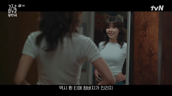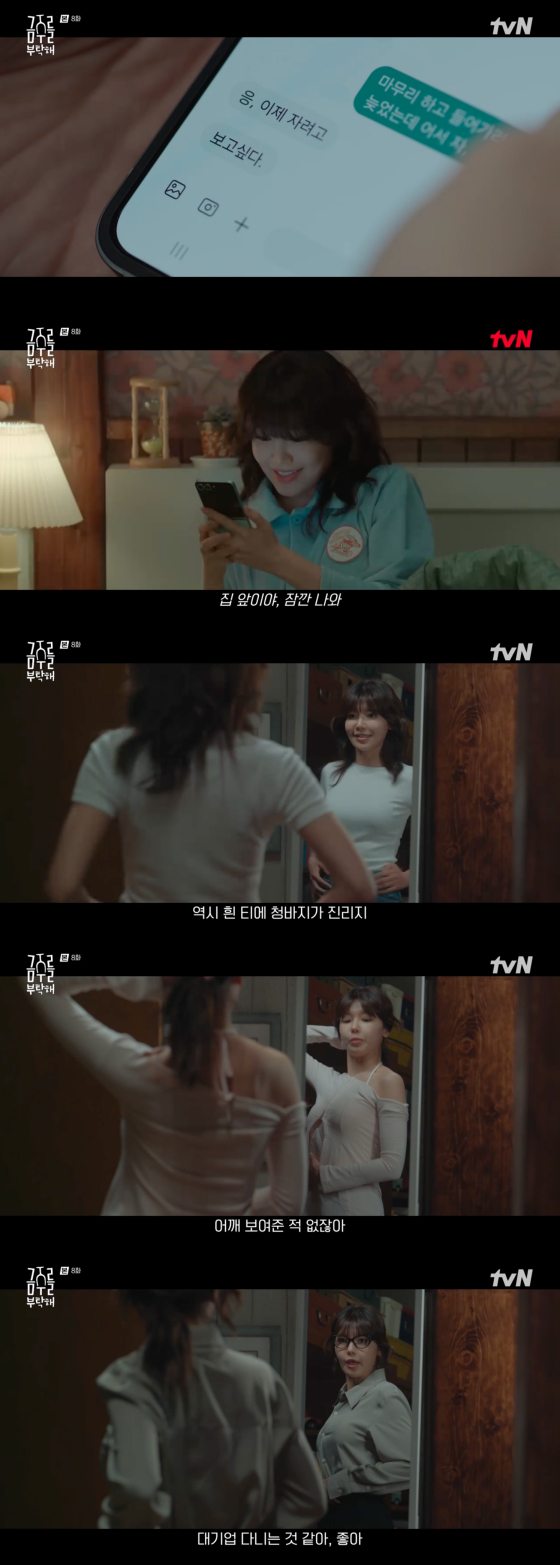 서의준의 '집 앞이야, 잠깐 나와'라는 문자를 받은 한금주는 다양한 옷을 골라 입으며 고민에 빠졌다. 그러다 결국 선택한 착장은 청순한 분위기의 니트, 롱 스커트 의상.