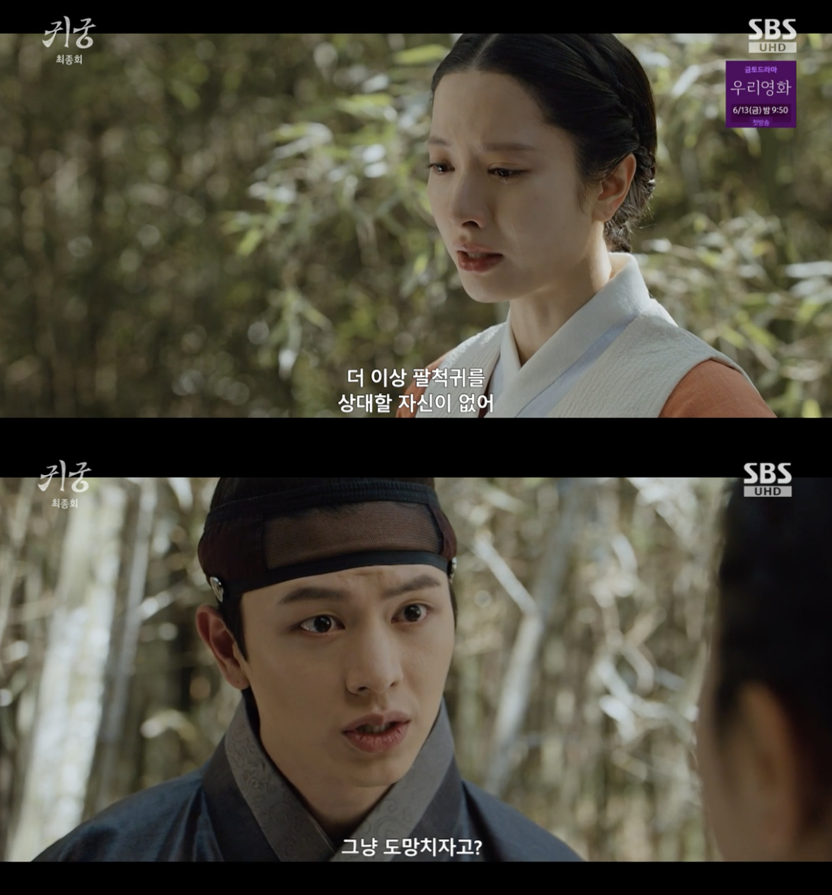 7일 방송된 SBS 금토드라마 '귀궁' 최종회에서는 여리(김지연 분)가 강철이(육성재 분)에게 팔척귀를 피해 도망가자고 제안하는 모습이 그려졌다. 하지만 이 모든 말은 강철이를 살리기 위한 여리의 거짓이었다.
