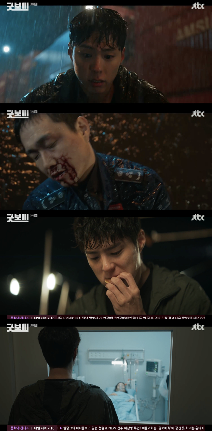 21일 방송된 JTBC 토일드라마 '굿보이' 7화에서는 민주영(오정세 분)을 폭행한 혐의로 징계 심사에 오른 윤동주(박보검 분)의 위태로운 상황이 그려졌다.