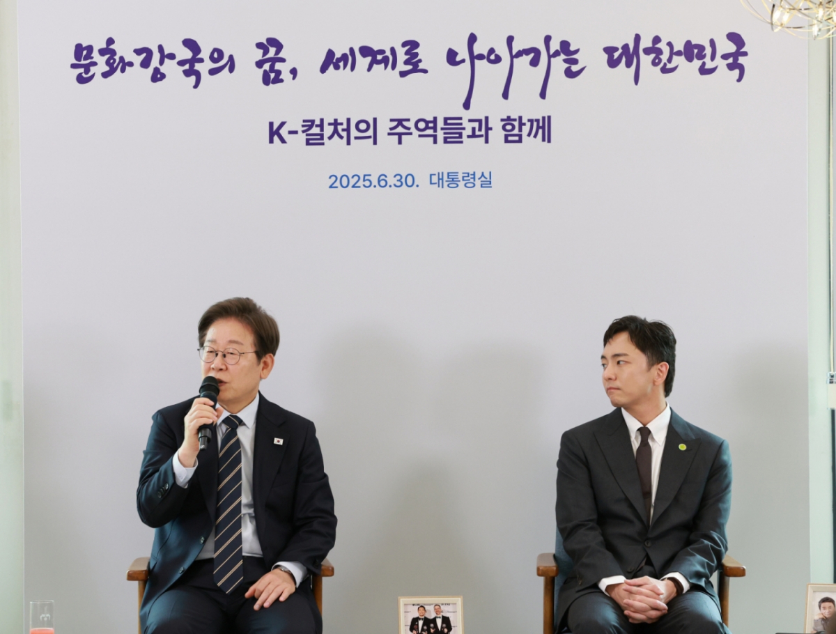 이재명 대통령은 30일 오후 2시 '문화강국의 꿈, 세계로 나아가는 대한민국' 행사를 열고 'K-컬처'의 주역들을 만났다.이날 행사에는 넷플릭스 '폭싹 속았수다'의 김원석 감독과 '어쩌면 해피엔딩'으로 토니상 6관왕을 달성한 박천휴 작가 등이 참석했다. 또 지난 5월 프랑스 문화예술훈장 최고 등급 코망되르 훈장을 받은 조수미 소프라노, 한국 남자 무용수 최초로 로잔발레콩쿠르에서 우승한 박윤재 발레리노, 중단편 영화 '첫여름'으로 칸국제영화제 학생 부문에서 1등의 영예를 안은 허가영 감독도 함께했다. 영부인 김혜경 여사도 자리했다.