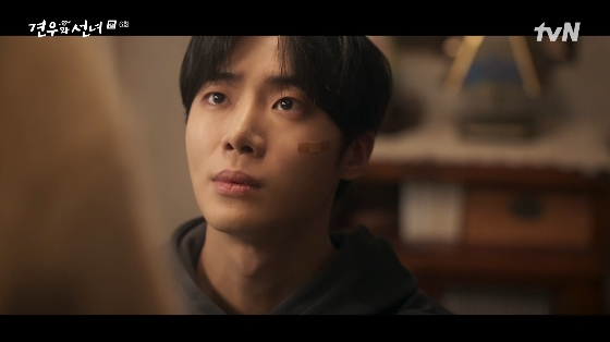8일 방송된 tvN 월화드라마 '견우와 선녀' 6회에서는 돌아가신 할머니의 사진을 태우지 않게 해달라며 박성아(조이현 분)에게 무릎 꿇는 배견우(추영우 분)의 모습이 그려졌다.
