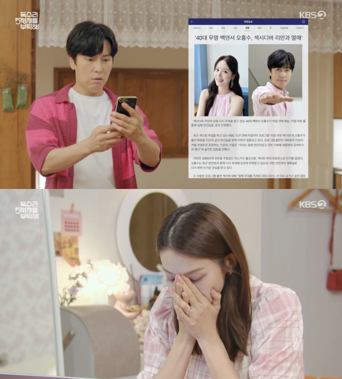 13일 방송된 KBS2TV 주말드라마 '독수리 5형제를 부탁해!'에서는 유명 여가수 리안(신고은 분)과 열애설이 난 오흥수(김동완 분)의 모습이 그려졌다.