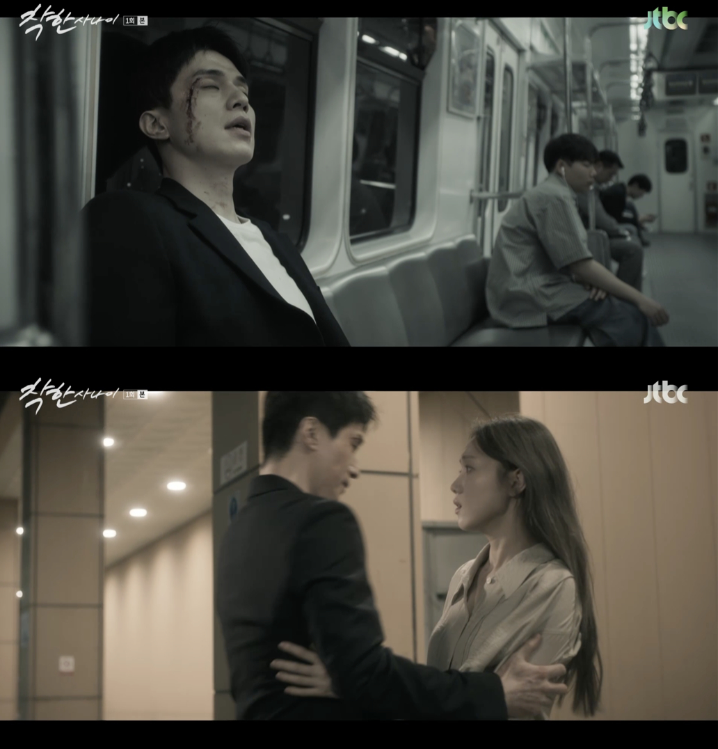 극은 지하철 내부에서 피를 흘리며 휘청이는 석철의 모습으로 시작됐다. 얼굴이 창백해지고 몸이 힘없이 가라앉은 그는 결국 좌석에 쓰러지듯 몸을 기댔다.