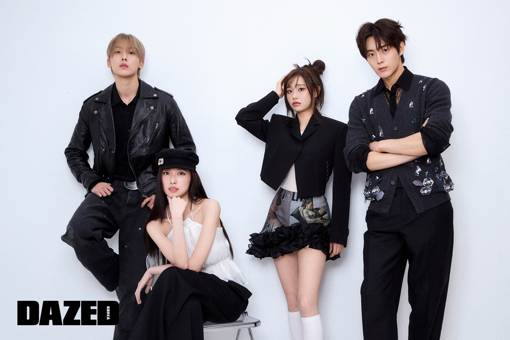 윤산하-아린-유정후-츄가 '내 여자친구는 상남자' 첫 방송을 자축하는 깜짝 화보를 공개해 이목을 집중시킨다. 네 사람이 <데이즈드> 8월호를 통해 극 중에서의 러블리한 모습과는 딴판인 시크한 매력을 마음껏 표출하는 것. 전체적으로 차가운 톤에 절제된 표정이 인상 깊은 네 사람의 화보는 치명적인 비주얼을 뽐내며 반전 매력을 이끈다.