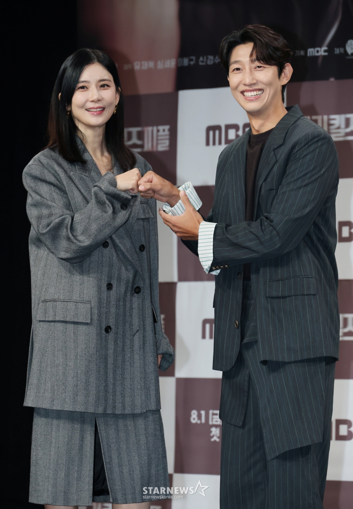 31일 오전 서울 마포구 상암 MBC 골든마우스홀에서 MBC 금토드라마 '메리 킬즈 피플'(연출 박준우, 극본 이수아) 제작발표회가 열렸다. 배우 이보영, 이민기, 강기영, 권해효, 윤가이, 박준우 감독이 참석했다.